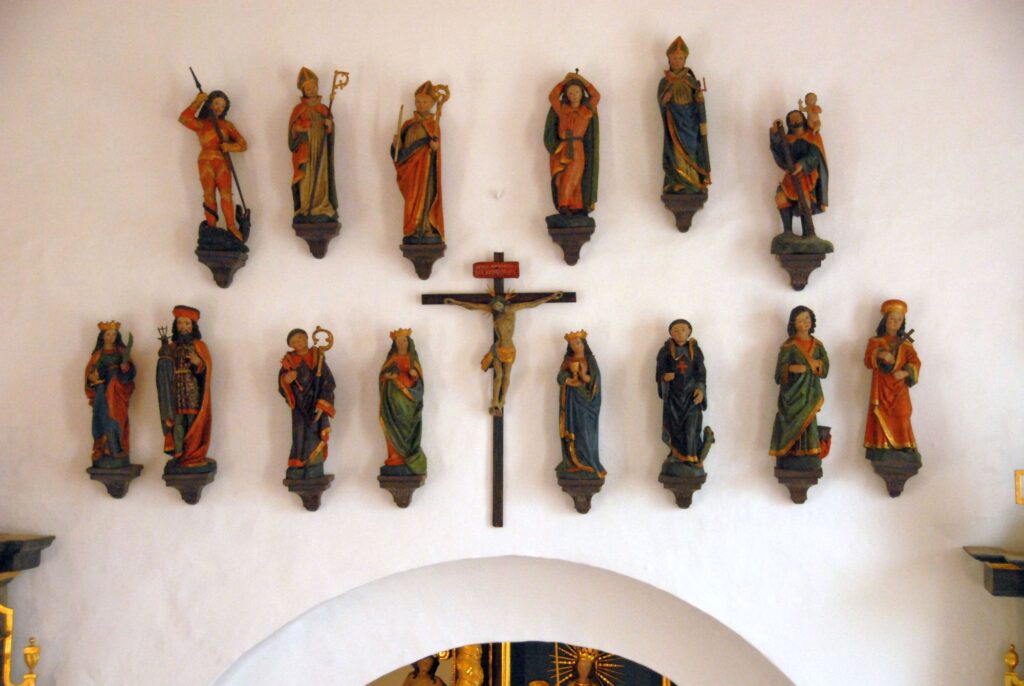 Prunkstück sind die Figuren der 14 Nothelfer aus dem 15. Jahrhundert